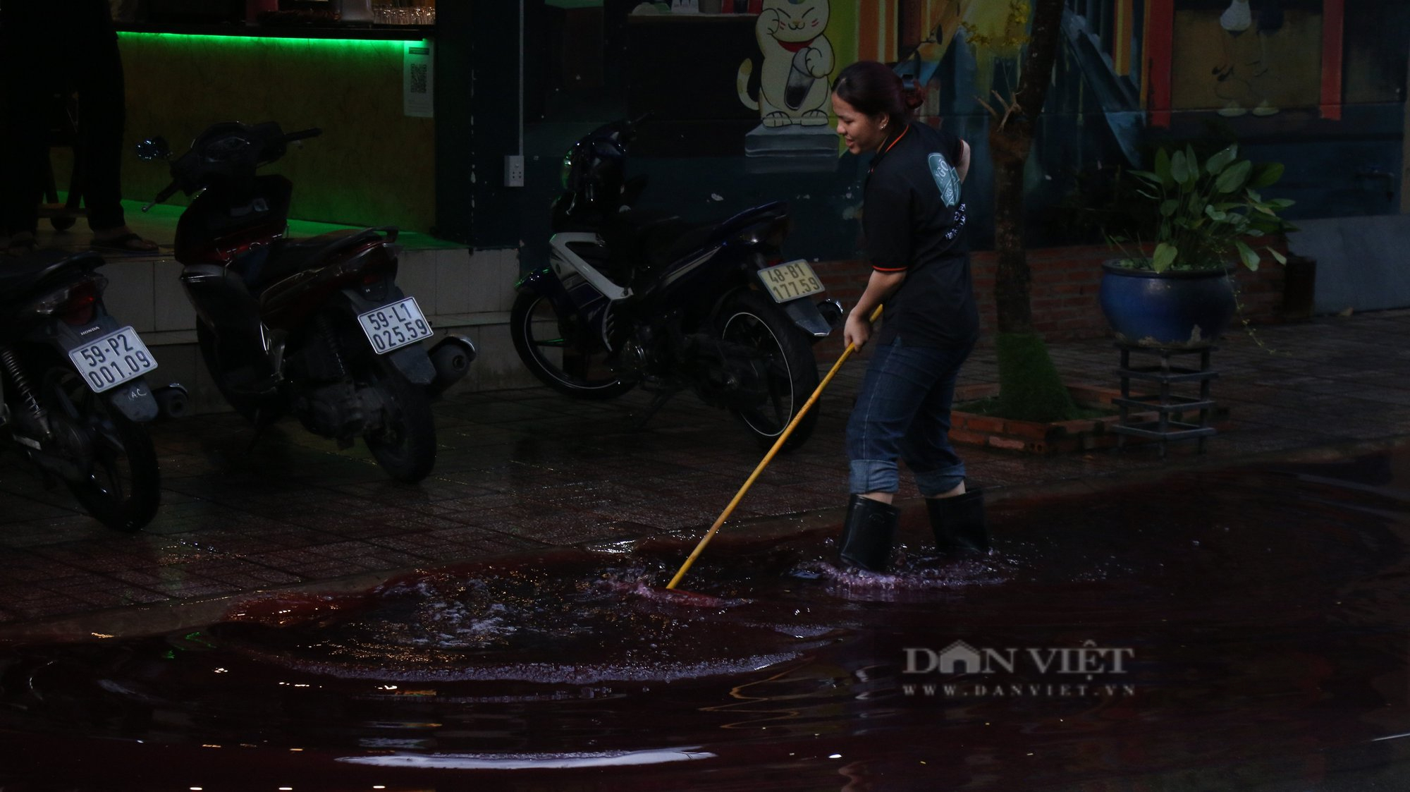 Nguyen Minh Trung, chairman of the Tan Thoi Hoa Ward People's Committee, said there are no fabric dyeing workshops near Phan Anh and To Hieu streets. He said the polluted water probably came from somewhere else through the sewage system of the Hiep Tan Channel. Trung said that, due to heavy rains, there was not enough time for the water to be drained. The ward is investigating the exact origin of the red water.