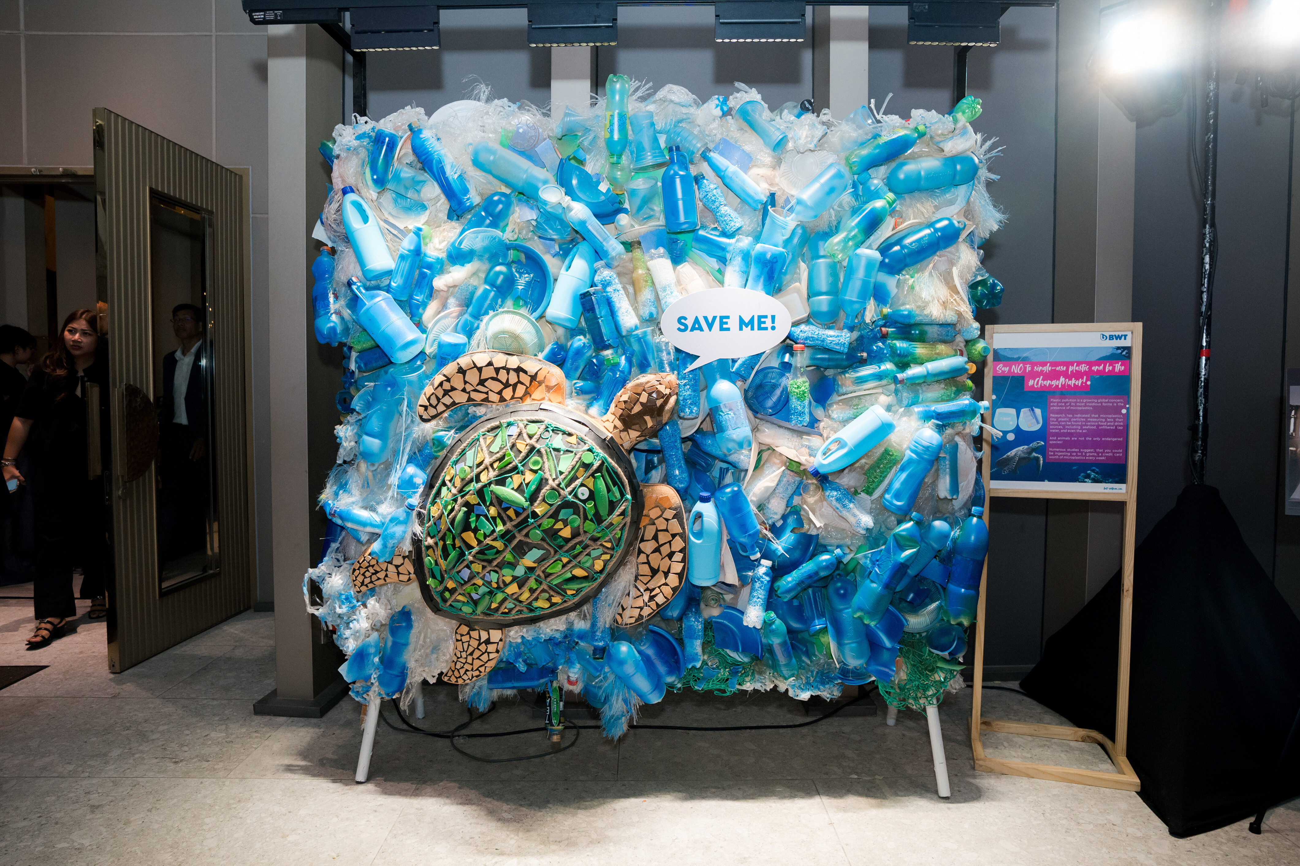 However, BWT's participation extended beyond mere product display. The brand took a proactive stance on environmental advocacy by presenting a handcrafted sculpture made from recycled plastic bottles, featuring a sea turtle—an emblem of the urgent environmental issues plaguing our oceans. Through this creative initiative, BWT aimed to raise awareness about the importance of environmental conservation and the need for sustainable practices in the water industry, by saying NO to single-use plastic.